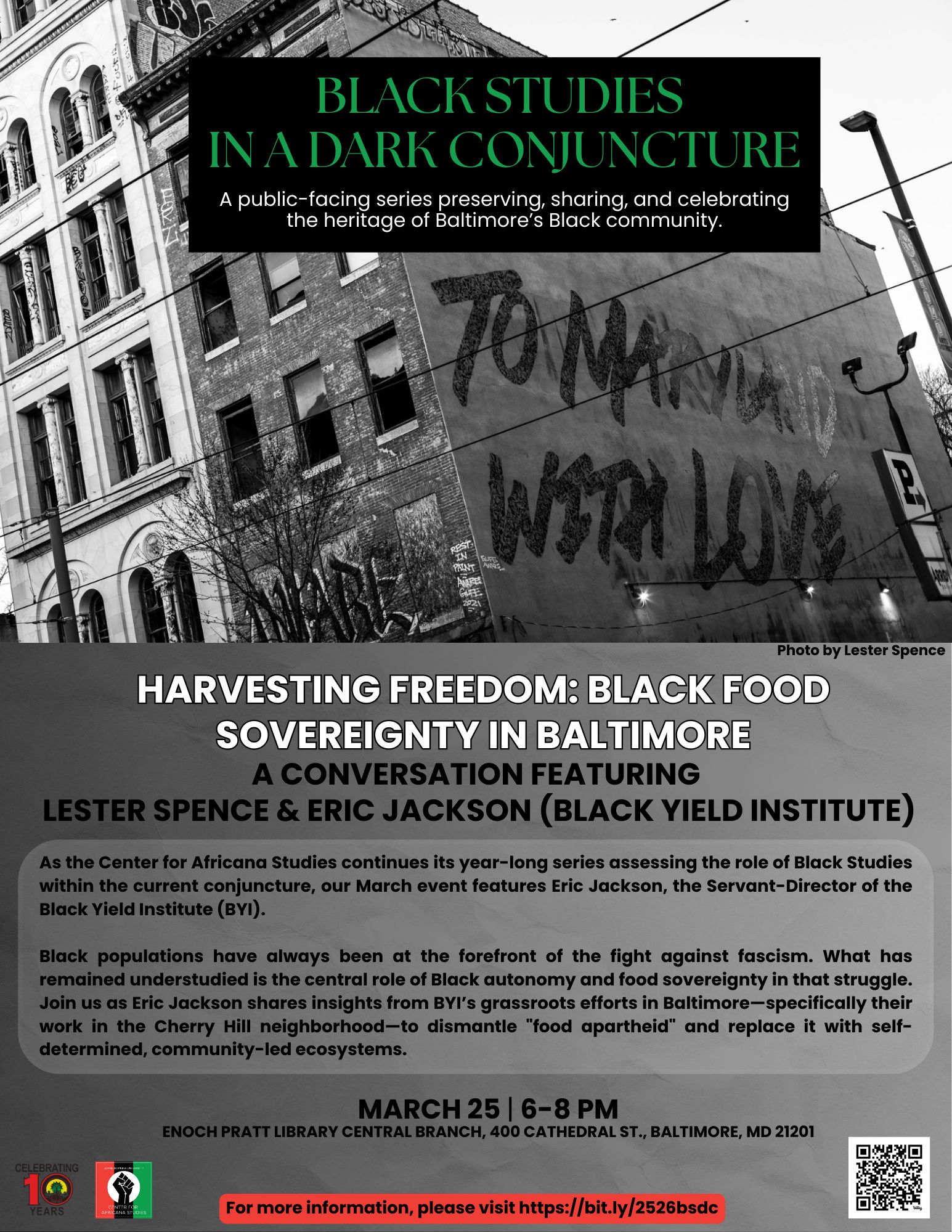For folks in Baltimore, tomorrow I’ll be in dialogue with Eric Jackson of Black Yield Institute, at the main branch of the Enoch Pratt Library. Starts at 6pm and should go until about 8. Flier attached.